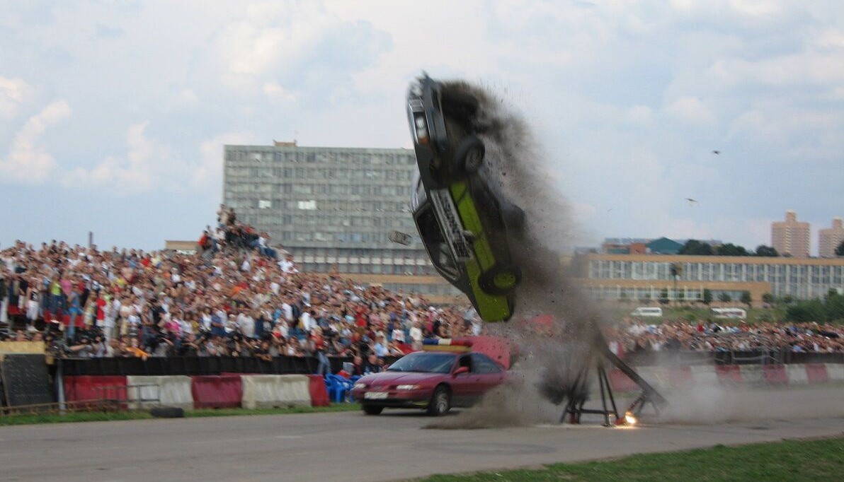 — Сальто на автомобилях.